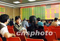 中國入世已無懸念,但入世前夕的中國股市卻連連跳水,懸念重重。圖為福州股民在股市議論股市懸念。中新社圖 華小銳 攝