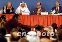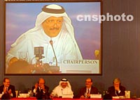 組圖:第四屆WTO部長會議審議通過中國入世 2001年11月11日 00:31 ![]() 第四屆WTO部長會議十日在卡塔爾首都多哈舉行會議正式通過中國入世。圖為世貿(mào)組織第四屆WTO部長會議組委會主席、卡塔爾財(cái)政經(jīng)貿(mào)大臣尤素夫·候賽因·卡馬爾敲錘通過中國加入世貿(mào)組織。中新社記者 錢興強(qiáng) 攝 ![]() 第四屆WTO部長會議十日晚在卡塔爾首都多哈舉行會議正式通過中國入世。圖為會議主席臺。中新社記者 錢興強(qiáng) 攝