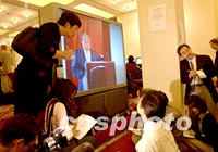 ![]() WTO多哈會議10日晚審議通過了中國入世,中國代表團(tuán)團(tuán)長石廣生、副團(tuán)長龍永圖出席會議。中新社記者 錢興強(qiáng) 攝 ![]() 世界貿(mào)易組織(WTO)第四屆部長級會議10日晚審議通過了中國加入世界貿(mào)易組織。圖為會議新聞中心的記者們在觀看電視直播。中新社記者 錢興強(qiáng) 攝