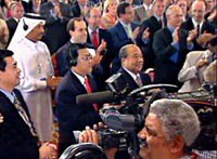 卡塔爾特寫(xiě):中國(guó)入世,一次空前的"盛宴"(附圖) 2001年11月11日 18:46 ![]() 第四屆WTO部長(zhǎng)會(huì)議十日晚在卡塔爾首都多哈舉行會(huì)議正式通過(guò)中國(guó)入世。圖為會(huì)議主席臺(tái)。中新社記者 錢(qián)興強(qiáng) 攝 ![]() 卡塔爾財(cái)政、經(jīng)濟(jì)和貿(mào)易大臣Youssef Hussain Kamal先生在多哈一槌落下宣布通過(guò)中國(guó)加入WTO時(shí),多哈WTO第四次部長(zhǎng)級(jí)會(huì)議的全體代表鼓掌向中國(guó)代表團(tuán)表示祝賀。