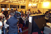圖文:多哈會(huì)議記者關(guān)注美國(guó)飛機(jī)墜毀事件 2001年11月13日 00:00 ![]() 美國(guó)最新撞機(jī)事件發(fā)生后,多哈WTO會(huì)議新聞中心的記者們紛紛停下手頭的工作,圍在電視屏幕前看現(xiàn)場(chǎng)直播。中新社記者 余東暉 攝 ![]() 美國(guó)最新撞機(jī)事件發(fā)生后,多哈WTO會(huì)議新聞中心的記者們紛紛停下手頭的工作,圍在電視屏幕前看現(xiàn)場(chǎng)直播。中新社記者 余東暉 攝