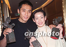 圖:金馬獎影帝影后榮歸北京 2001年12月13日 18:34 ![]() 剛剛榮獲第三十八屆臺灣電影金馬獎影帝、影后的大陸演員劉燁(左)、秦海潞十三日向北京媒體展示獎杯,他們因在《藍(lán)宇》、《榴蓮飄飄》兩部電影中分別飾演男、女主角而獲此殊榮。 中新社圖 武仲林 攝 |