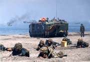 假想解放軍登陸 臺(tái)軍今早在澎湖實(shí)彈演習(xí)(圖) 2001年12月27日 15:58 臺(tái)軍進(jìn)行沙灘演習(xí)(資料圖片) 中新網(wǎng)香港12月27日消息:臺(tái)北訊,臺(tái)灣軍方的澎湖“國(guó)防司令部”,今天清晨實(shí)施反登陸實(shí)彈演習(xí),操演過程中試射各種火炮。 澎湖“國(guó)防司令部”今早集結(jié)部隊(duì),在西嶼外海展開“聯(lián)信240號(hào)”演習(xí)。其間進(jìn)行沙盤推演,圖上作業(yè)標(biāo)定目標(biāo),隨即用軍方的105、155榴彈炮進(jìn)行對(duì)海射擊。 之后,臺(tái)軍使用40防空炮對(duì)空射擊,進(jìn)行擊機(jī)的操演。 臺(tái)灣軍方表示,操演是以實(shí)兵實(shí)彈射擊,已驗(yàn)證臺(tái)軍的陸海空三軍聯(lián)合作戰(zhàn)能力。 有參加演習(xí)的軍官聲稱,此次軍事操演的目的是假想解放軍在臺(tái)登陸,臺(tái)軍則以榴炮和機(jī)槍炮“綿密的射擊”,“阻止”解放軍登陸。 臺(tái)軍方聲稱,演習(xí)中,整個(gè)反舟波火炮射擊都命中目標(biāo)。 |