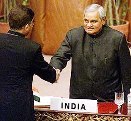巴總統(tǒng)在南亞首腦會向印總理伸出友誼之手(圖) 2002年01月05日 15:45 ![]() 中新網(wǎng)北京1月5日消息:巴基斯坦總統(tǒng)穆沙拉夫在剛剛揭幕的南亞區(qū)域合作聯(lián)盟首腦會議上發(fā)表演說后,主動與印度總理瓦杰帕伊握手。 巴基斯坦總統(tǒng)穆沙拉夫發(fā)表演說指出,所有與會代表地位必須平等,各國要尋求長遠(yuǎn)的辦法,解決地區(qū)內(nèi)事務(wù)爭端.他還說,巴基斯坦是恐怖主義的受害者,并重申他已準(zhǔn)備好同印度展開對話。他在結(jié)束發(fā)言之前,主動提到與印度的緊張關(guān)系,并表明愿意隨時與印度展開和平對話以及愿意伸出真正友誼之手,然后他就步向瓦杰帕伊與他握手。 而印度總理瓦杰帕伊則感謝穆沙拉夫主動向他伸出友誼之手,并呼吁雙方停止無意義的暴力沖突。他稱印度一直積極尋求同巴基斯坦和談,但依然受到襲擊。他還說,印度在近二十年間不斷受國際恐怖主義侵襲,全球必須合作打擊恐怖主義。 印巴關(guān)系因為印度國會遇襲事件而惡化,雙方均在邊境部署軍隊并不時交火。印度總理瓦杰帕伊要求巴基斯坦采取強(qiáng)硬手段對付境內(nèi)極端份子,否則拒絕與穆沙拉夫直接對話。兩國領(lǐng)袖昨晚在尼泊爾皇宮參加晚宴期間沒有直接接觸。 |