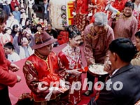 圖:佛山民俗文化節(jié)首次舉辦中式古典集體婚禮 2002年01月13日 09:58 ![]() 佛山民俗文化節(jié)首次舉辦中式古典集體婚禮,新人在萬福古戲臺上拜堂別有一番情趣。圖為伴娘捧著喜糖托盤,讓新人敬獻(xiàn)給雙親。中新社圖 辛述之 攝 |