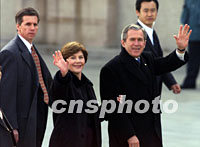 圖:美國總統(tǒng)布什抵達(dá)北京 2002年02月21日 11:07 ![]() 美國總統(tǒng)布什與夫人二十一日上午抵達(dá)北京首都國際機(jī)場,開始為期兩天的工作訪問。中新社圖 毛建軍 攝