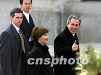 圖:布什訪問北京信心十足 2002年02月21日 16:38 ![]() 美國總統(tǒng)布什二十一日抵達(dá)北京首都國際機場時,向迎接的人們豎起拇指。中新社記者 毛建軍 攝