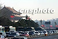 圖:中美國(guó)旗飄揚(yáng)天安門 2002年02月22日 09:21 ![]() 美國(guó)總統(tǒng)布什訪華,二十二日的北京天安門飄揚(yáng)著中美國(guó)旗,路上行速著中美合作的環(huán)保清潔燃料巴士。中新社記者 賈國(guó)榮 攝