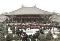 佛指舍利赴臺轉(zhuǎn)播開創(chuàng)兩岸三地媒體合作新篇 2002年02月22日 16:31 ![]() 世間僅存的釋迦牟尼佛指真身舍利 ![]() 陜西西安法門寺全景 ![]() 恭送法會盛況 中新網(wǎng)香港2月22日消息:臺北訊,佛界圣物、陜西西安法門寺佛指舍利即將迎請赴臺。據(jù)悉,在法門寺為此舉行的盛大恭送法會儀式中,首開兩岸三地新聞媒體合作現(xiàn)場直播的模式。 今天下午三時在法門寺舉行的“佛指舍利赴臺灣地區(qū)瞻禮恭送法會”,是此次盛大活動的第一場重頭戲,由陜西電視臺提供人力,香港鳳凰衛(wèi)視制作,臺灣東森提供衛(wèi)星頻道亞太二號的方式,在兩岸三地的范圍內(nèi)進行現(xiàn)場直播,所有電子媒體均采用同樣的訊號發(fā)射。 據(jù)悉,這一合作構(gòu)想三個月前提出,經(jīng)過一個月的協(xié)調(diào)才達成。 此外,攝影機進入大雄寶殿禁地拍攝法會現(xiàn)場,也是此行的一個“重要突破”。但由于只允許兩部攝像機進入寶殿禁地,臺灣的中視、華視、民視、東森、中天、TVBS、三立、佛光衛(wèi)視等眾多電視媒體又因此進行了一番協(xié)調(diào)。 據(jù)悉,佛指舍利抵臺后37天的七場大型活動,也將依此合作模式進行現(xiàn)場直播。明天上午,佛指舍利的專機從西安咸陽機場起飛,經(jīng)停香港轉(zhuǎn)機,一直到抵臺并由高速公路進臺北市區(qū)臺大體育館“安座”,整個過程中,沿途將由兩岸三地十家電視媒體的SNG(現(xiàn)場新聞轉(zhuǎn)播)車進行接力轉(zhuǎn)播,以對盛況進行完整的紀(jì)錄。