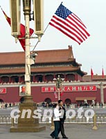 圖:中美國(guó)旗招展天安門引市民關(guān)注 2002年02月22日 18:36 ![]() 美國(guó)總統(tǒng)布什訪華第二日,天安門廣場(chǎng)中美國(guó)旗在陽(yáng)光下招展飄揚(yáng),金水橋邊車水馬龍,一些游人以中美國(guó)旗為背景照相留影。許多市民對(duì)布什昨天關(guān)于“中美關(guān)系搞好了對(duì)世界都有益”的表述十分贊賞。中新社記者 王麗南 攝