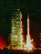 北京航天指揮控制中心目擊:"神舟"一飛沖云天 2002年03月26日 00:18 ![]() ![]() 神舟三號發(fā)射成功 中新社北京三月二十五日電題:“神舟”一飛沖云天——北京航天指揮控制中心目擊記 作者 傅明毅 唐文俊 孫自法 今晚是中國航天界又一個永志不忘之夜,在北京航天指揮控制中心,人們在翹首等待那一不平常的時刻,等待“神舟”三號飛船發(fā)射升空。 這里是中國航天飛船的飛控中心,也是中國航天測試的神經(jīng)中樞,擔負著中國載人航天工程飛行任務(wù)的指揮調(diào)度、信息處理、監(jiān)控顯示、分析計算和飛行控制等任務(wù)。 寬敞、明亮的現(xiàn)代化大廳里,四塊面積為四十八平方米的巨幅液晶光閥大屏幕上,顯示著從酒泉載人航天發(fā)射場傳來的壯觀畫面:高大的發(fā)射塔架,擁抱著乳白色的巨型運載火箭,火箭上端承載著中國航天的驕子——“神舟”三號飛船;大屏幕上標示著飛船飛行時間、北京時間、任務(wù)時間,同時不斷地跳躍著各種飛行控制數(shù)據(jù);數(shù)百臺終端微機的顯示屏上跳動著令人眼花繚亂的數(shù)字;大廳里傳來各測控站(船)宏亮、準確的報告聲此起彼伏;指揮控制臺上,指揮決策者、工程技術(shù)專家正密切關(guān)注著發(fā)射前的各種狀態(tài)。 該中心負責(zé)人介紹,經(jīng)過科技人員堅持不懈地艱苦探索和奮勇拼搏,先后突破了航天器透明控制、應(yīng)急逃逸救生、高精度軌道確定、飛控計劃自動生成、返回控制和著陸預(yù)報、高速數(shù)據(jù)處理和可視化監(jiān)視顯示等一系列關(guān)鍵技術(shù)。與“神舟一號”和“神舟二號”飛船試驗任務(wù)有明顯不同的是,這次任務(wù)新增加了逃逸救生測控功能,這也是技術(shù)人員集智攻關(guān)、團結(jié)拼搏,在任務(wù)實施前才攻克的一項新技術(shù)。 二十二時十四分,飛船發(fā)射進入一分鐘讀秒!笆、九、八、七、六……”揚聲器里傳來最后的讀秒聲。 “點火!” “起飛!” 巨型運載火箭噴射出一團桔紅色的烈焰,托舉著“神舟”三號飛船拔地而起,直刺蒼穹。漸漸地變成一個小小的亮點,最后隱匿在無窮的天際里。 就在飛船進入蒼穹的瞬間,描繪出中國西北地區(qū)版圖和火箭飛行理論曲線的大屏幕上隨即出現(xiàn)一個小小的紅色亮點,標示著船箭實際飛行的曲線緩緩向前延伸—— “發(fā)現(xiàn)目標!” “跟蹤正常!” “神舟”三號飛船發(fā)射升空后,北京航天指揮控制中心大廳大屏幕蔚藍色的背景上,相互交織而又排列有序的飛行曲線表明,飛船正按照預(yù)定軌道在太空中盡情地遨游……(完)