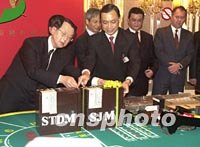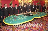 組圖:澳門博彩股份有限公司正式接手11間賭場(chǎng) 2002年04月02日 16:14 ![]() 澳門博彩股份有限公司一日凌晨正式接手經(jīng)營(yíng)澳門旅游娛樂(lè)有限公司屬下的十一間賭場(chǎng),新的博彩合約正式生效。圖為兩家公司于零點(diǎn)時(shí)分在賭場(chǎng)交接。中新社記者 宗金柱 攝