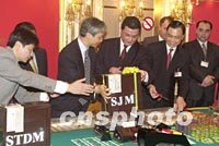 ![]() 澳門博彩股份有限公司一日凌晨正式接手經(jīng)營(yíng)澳門旅游娛樂(lè)有限公司屬下的十一間賭場(chǎng),新的博彩合約正式生效。圖為交接場(chǎng)面。中新社記者 宗金柱 攝