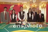 ![]() 澳門博彩股份有限公司一日凌晨正式接手經(jīng)營(yíng)澳門旅游娛樂(lè)有限公司屬下的十一間賭場(chǎng),新的博彩合約正式生效。圖為換上新工作服的賭場(chǎng)員工。中新社記者 宗金柱 攝