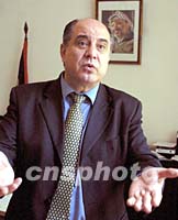 圖:巴勒斯坦駐華大使談巴以沖突 2002年04月03日 20:23 ![]() 巴勒斯坦駐華大使薩法里尼三日在北京的大使館向采訪他的媒體記者說(shuō):他前兩天在與阿拉法特主席通電話時(shí),阿拉法特表示必須斗爭(zhēng)到底,決不屈服。在談到近日巴以沖突的形勢(shì)時(shí)說(shuō):目前,國(guó)際社會(huì)已經(jīng)開(kāi)始發(fā)揮作用,承擔(dān)他們的責(zé)任。中新社圖 李剛 攝