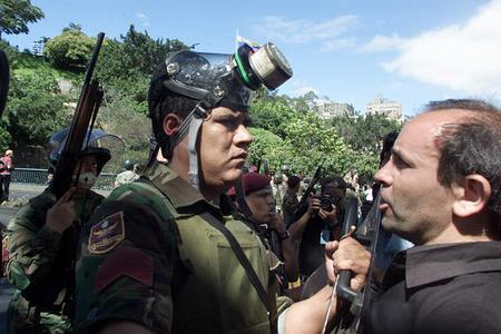 委內(nèi)瑞拉將領(lǐng)稱總統(tǒng)失去權(quán)力 軍隊(duì)控制國家(圖) 2002年04月12日 10:40 委內(nèi)瑞拉10名高級軍官11日發(fā)表聲明,要求總統(tǒng)查韋斯下臺.圖為2002年2月4日委內(nèi)瑞拉總統(tǒng)在首都加拉加斯檢閱軍隊(duì)。法新圖