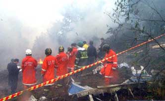 組圖:國(guó)航客機(jī)在韓國(guó)墜毀 韓國(guó)方面搶救生還者 2002年04月15日 14:15 ![]() 圖為4月15日在韓國(guó)墜毀的中國(guó)國(guó)航767客機(jī)殘骸。 ![]() 圖為韓國(guó)救援人員在墜機(jī)現(xiàn)場(chǎng)。 ![]() 圖為墜機(jī)現(xiàn)場(chǎng)。 ![]() 生還者被送往醫(yī)院后家屬前來(lái)探望。 ![]() 救援人員從墜毀的CA-129客機(jī)上找到的生還者。