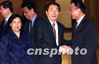 圖:朱镕基離京出訪土耳其等三國 2002年04月15日 14:40 ![]() 中國國務院總理朱镕基十五日離開北京,前往土耳其、埃及和肯尼亞進行正式訪問。國務院副總理吳邦國等在北京人民大會堂送行。中新社記者 毛建軍 攝