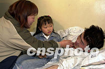 圖:四一五空難中國幸存者與家屬相會 2002年04月20日 19:00 ![]() 四·一五空難中國幸存者的家屬20日終于見到了躺在韓國醫(yī)院里的親人,生死相逢,熱淚盈盈。圖為幸存者金文學(xué)與妻子、女兒見面時的歡樂場面。作者:陶光雄