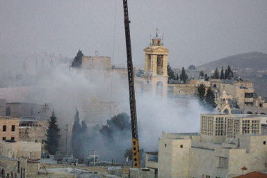 以巴官員將會談 討論伯利恒主誕堂對峙危機(圖) 2002年04月23日 16:23 濃煙巨浪中的伯利恒主誕堂。(法新圖) 中新網(wǎng)北京4月23日消息:以色列電臺報道說,以巴官員今天將舉行會談,試圖解決伯利恒市主誕堂長達三周的對峙局面。 德新社援引報道說,這次會談原定上周舉行,但最后被巴勒斯坦領(lǐng)導(dǎo)人阿拉法特取消。 另據(jù)路透社報道,伯利恒市長已經(jīng)證實,以巴官員今日將會首次會晤,商討解決這個問題。 預(yù)料會議會在當?shù)貢r間上午11:00舉行。伯利恒市長稱這是初步會談,希望能夠取得突破。以色列軍方亦證實正在為會議作準備。