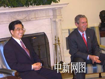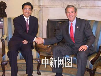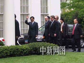 多圖:胡錦濤副主席與美國(guó)總統(tǒng)布什舉行會(huì)晤 2002年05月02日 08:48 ![]() 美國(guó)當(dāng)?shù)貢r(shí)間五月一日下午,美國(guó)總統(tǒng)布什在白宮會(huì)晤中國(guó)國(guó)家副主席胡錦濤。中新社 徐德金/攝 ![]() 美國(guó)當(dāng)?shù)貢r(shí)間五月一日下午,中國(guó)國(guó)家副主席胡錦濤在白宮與美國(guó)總統(tǒng)布什舉行會(huì)晤。圖為胡錦濤、布什微笑面對(duì)攝影記者短暫拍照。中新社 徐德金/攝 ![]() 美國(guó)當(dāng)?shù)貢r(shí)間五月一日上午,中國(guó)國(guó)家副主席胡錦濤與美國(guó)副總統(tǒng)切尼舉行會(huì)談。圖為胡副主席抵達(dá)白宮時(shí)向守候的記者揮手致意。中新社 徐德金/攝 中新網(wǎng)華盛頓五月一日電(記者徐德金)美國(guó)當(dāng)?shù)貢r(shí)間五月一日下午,中國(guó)國(guó)家副主席胡錦濤與美國(guó)總統(tǒng)布什舉行會(huì)晤。 會(huì)晤在白宮橢圓型辦公室舉行。在開(kāi)放給媒體攝影記者短暫拍照時(shí),布什、胡錦濤滿面微笑、頻頻握手,布什還風(fēng)趣地對(duì)記者說(shuō),“再拍一張”。 五月一日上午,胡錦濤與切尼副總統(tǒng)在白宮舉行了會(huì)談。胡副主席是應(yīng)切尼副總統(tǒng)的邀請(qǐng)?jiān)L問(wèn)美國(guó)的。 下午,胡錦濤還會(huì)晤了美國(guó)總統(tǒng)國(guó)家安全顧問(wèn)賴斯。 今天,大批媒體記者守候在白宮,采訪胡錦濤副主席與美國(guó)領(lǐng)導(dǎo)人的會(huì)晤、會(huì)談。 胡錦濤副主席今天在五角大樓還會(huì)晤了美國(guó)國(guó)防部長(zhǎng)拉姆斯菲爾德。