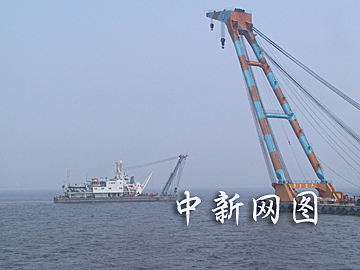 ![]() 有關(guān)部門出動巨型起吊設(shè)備打撈五七空難失事客機機頭。中新社記者 王麗南 攝