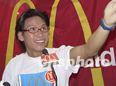 圖:著名歌星蘇永康出席北京麥當(dāng)勞10周年店慶 2002年05月10日 20:45 ![]() 10日下午,“微笑大使”、香港著名歌星蘇永康在北京出席北京麥當(dāng)勞10周年店慶。中新社圖 章永哲 攝
