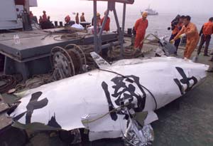 圖文:打撈起重要飛機(jī)殘骸 搜尋范圍進(jìn)一步縮小 2002年05月12日 07:32 ![]() “五-七”空難現(xiàn)場又打撈出一塊較大的飛機(jī)殘骸,殘骸上“中國北”三個字清晰可見。(中新社記者王麗南攝) 中新網(wǎng)大連5月12日消息:昨日深夜11時25分,交通部救撈局局長宋家慧給新華社記者打手機(jī)說:“今天搜救工作取得重要進(jìn)展,打撈起飛機(jī)頂蓋、起落架、應(yīng)急發(fā)電機(jī)、應(yīng)急門、輪胎等重要飛機(jī)殘骸,這將對事故原因分析起到重要作用。” 據(jù)新華社報道,宋家慧的聲音在電話里提高了聲調(diào):“更重要的是,根據(jù)已打撈出水的機(jī)頭殘骸到機(jī)尾殘骸的位置,我們已經(jīng)把飛機(jī)墜落的區(qū)域縮小在長600米、寬400米東西方向海域內(nèi),為下一階段的‘黑匣子’打撈和搜救工作開展打開了新的局面! 據(jù)宋家慧介紹,明天一些救撈船只將暫時調(diào)離現(xiàn)場,等待從國外調(diào)集的“黑匣子”專用控測設(shè)備到達(dá)后再次展開新一輪打撈工作。(完)