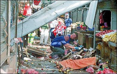 以色列內(nèi)坦亞爆炸3人死亡 以軍開進拉馬拉 2002年05月20日 08:08 ![]() 以色列北部海濱城市內(nèi)坦亞市中心的一個集貿(mào)市場發(fā)生自殺式炸彈爆炸。(法新圖) 中新網(wǎng)北京5月20日消息:耶路撒冷訊,以色列北部海濱城市內(nèi)坦亞19日下午發(fā)生的自殺式炸彈爆炸中,死亡人數(shù)目前已經(jīng)上升至3人,另外還有至少50人受傷,其中8人傷勢嚴重。 以色列電視臺報道說,爆炸發(fā)生在當?shù)貢r間16時25分前后(北京時間21時25分),爆炸地點為內(nèi)坦亞市中心的集貿(mào)市場。巴勒斯坦激進組織哈馬斯已經(jīng)宣布對此次襲擊負責。 美聯(lián)社報道說,這名發(fā)動自殺式炸彈襲擊的巴勒斯坦人身穿著以色列陸軍軍服,于周日混入內(nèi)坦亞市中心的一個集貿(mào)市場。 幾個小時后,巴勒斯坦目擊者稱,一些以軍坦克開進了西岸城市拉馬拉。而以軍發(fā)言人則稱,開進拉馬拉的只是幾輛裝甲運兵車而非坦克。這些部隊短時間內(nèi)即撤出了該城市,沒有傷及巴勒斯坦人。