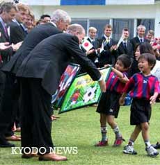 法國等5個世界杯參賽國相繼到達日本最后備戰(zhàn) 2002年05月21日 15:07 ![]() 丹麥代表隊抵達和歌山。在和歌山集訓地向丹麥選手贈送足球繪畫的幼兒園小朋友(共同社)