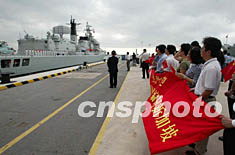 中新社北京五月二十三日電新加坡消息:今日上午十點,美麗的“花園島國”新加坡,披上節(jié)日盛裝,迎來了中國人民海軍第一支艦艇編隊——環(huán)球航行訪問艦艇編隊。 新加坡海軍在樟宜港為中國艦艇編隊的到來舉行了隆重?zé)崃业臍g迎儀式,新加坡海軍艦隊副司令陳凱賀(TAN KAI HOE)上校和中國駐新大使張九桓、中資機構(gòu)、留學(xué)生及新各界人士到碼頭迎接。歡迎人群中拉起了“熱烈歡迎中國海軍艦艇編隊訪問新加坡”的巨幅標(biāo)語,上百面中國國旗在歡迎人群中揮舞成一片;中國使館女青年向總指揮丁一平獻(xiàn)花,陳凱賀上校致歡迎詞,丁一平將軍作了簡短講話并與張九恒大使、陳凱賀上校共同接受了記者的采訪。 丁一平將軍在接受記者采訪時說,這是中國海軍艦艇編隊首次訪問新加坡,作為中國人民和中國軍隊的友好使者,我們五百零六名官兵都感到非常高興。這次訪問,對加深兩國人民和軍隊之間的相互了解、增加信任、擴大交流,發(fā)展友誼,進(jìn)一步促進(jìn)兩國人民、軍隊、特別是促進(jìn)兩國海軍關(guān)系的發(fā)展,有著非常重要的意義。訪問期間,我們的官兵將親身感受新加坡人民和軍隊的友好情誼,同樣,新加坡人民和軍隊也將通過中國海軍,更多地了解到中國人民和中國軍隊。 新海軍艦隊副司令陳凱賀告訴記者,新海軍十分重視中新兩國海軍關(guān)系的發(fā)展,新海軍先后于九八、九九年分別派艦對上海和青島進(jìn)行了友好訪問。這次中國海軍艦艇編隊來新加坡訪問,是我們期待已久的事,我們?yōu)橹袊\姷膩碓L,精心安排了多方面的活動。 據(jù)記者了解,訪問樟宜港,是中國海軍艦艇編隊此次環(huán)球航行訪問的第一站。該港位于新加坡北部,是新海軍最大的基地和海軍司令部所在地,港內(nèi)可停靠包括航空母艦在內(nèi)的多種艦船。中國艦艇編隊將在此訪問三天,訪問其間,相繼到港的還有泰國、德國軍艦。 歡迎儀式結(jié)束后,編隊總指揮丁一平在張九恒大使陪同下前往新國防部拜會了新海軍總長(司令)呂德耀少將。參加歡迎儀式的中國駐新使館人員、華人華僑及留學(xué)生代表百余人登艦參觀,并與官兵們進(jìn)行了親切交談。 當(dāng)日下午,出訪官兵參觀了新海軍基地設(shè)施和戰(zhàn)術(shù)訓(xùn)練中心、軍艦等。晚上,新海軍為中國艦艇編隊官兵舉行了歡迎宴會,新海軍參謀長戴榮利準(zhǔn)將等高級官員出席。(完)