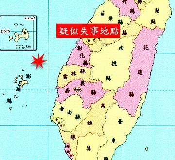 圖:臺(tái)灣墜海客機(jī)墜海地點(diǎn)示意圖 2002年05月25日 19:06 ![]() (中時(shí)電子報(bào)圖) 鄭重聲明:關(guān)于臺(tái)灣華航飛機(jī)失事的新聞信息,系中新網(wǎng)特稿,未經(jīng)書面授權(quán),不得采用。