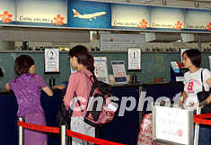 組圖:香港赴臺(tái)灣航班營運(yùn)正常 2002年05月26日 14:45 ![]() 五月二十六日上午,香港國際機(jī)場(chǎng)赴臺(tái)灣的所有航營運(yùn)正常。圖為“華航”柜臺(tái)均與往常一樣,次序井然。中新社記者 潘索菲 攝
