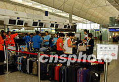 ![]() 五月二十六日,香港赴臺(tái)灣的旅游團(tuán)沒有受華航失事影響,照常搭乘華航班機(jī)赴臺(tái)灣旅游。中新社記者 潘索菲 攝