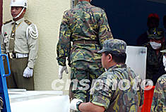 圖:臺灣澎湖28日高溫士兵加運大量冰塊降溫 2002年05月29日 11:14 ![]() 五月二十八日臺灣澎湖地區(qū)氣溫高升,設在馬公空軍基地的失事華航客機遇難乘客尸體辨認中心空氣污濁,士兵緊急加運大量冰塊降溫。中新社記者 任晨鳴 攝