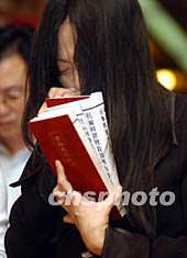 ![]() 臺灣"華航"失事客機乘客罹難已七天,按照中國民間辦"頭七'的治喪習俗,臺北市佛教界五月三十一日舉辦追悼失事"華航"客機遇難乘客法會,一名女子遇難家屬悲痛欲絕。中新社記者 任晨鳴 攝