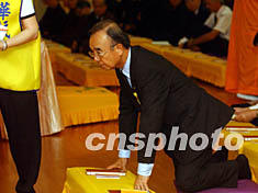 組圖:臺北舉行追思"華航"遇難乘客法會 2002年05月31日 19:59 ![]() 五月三十一日,“華航” 董事長李云寧參加臺北佛教界追思遇難者法會時下跪,向遇難者致哀。中新社記者 任晨鳴 攝