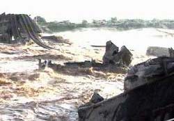 圖文:因洪水而中斷的隴海鐵路今晨恢復通車 2002年06月10日 14:06 ![]() 因洪水中斷的西安市隴海鐵路灞河大橋恢復通車 中新社西安六月十日電(張珂冽瑋)因山洪暴發(fā)而被沖垮的陜西省西安市隴海鐵路灞河大橋,已于今日凌晨零點五十五分恢復通車。有關人士稱,昨日滯留西安的近萬名旅客現(xiàn)已基本疏散。截至今天中午,已通過的雙向對開客車達到十五列。 據(jù)了解,灞河大橋位于隴海鐵路西安站以東,始建于一九三四年,因橋齡較長,橋基飽經(jīng)風蝕雨刷。九日凌晨至下午的一場大暴雨之后,灞河洪水流量達到每秒六百立方米。四個橋墩被沖掉,五孔橋被沖垮,造成一百零五米長的一段鐵路橋完全垮塌斷裂,繁忙的隴海鐵路上下行一度中斷達八個多小時,幸無人員傷亡。 記者今天在現(xiàn)場采訪時看到,昔日干涸的灞河洶涌澎湃,渾黃的激流拍打著河岸,在河床上形成了落差不等的瀑布,氣勢壯觀。河岸上站滿了搶險人員,大型挖掘機、推土機等搶險設備源源不斷地開赴現(xiàn)場。大批警察疏導交通,維持秩序,協(xié)助搶險。 一位老大爺心有余悸地告訴記者,昨天下午三點半,一列開往安康的火車剛剛從距隴海線灞橋鐵路橋東側的西康鐵路橋開過,一聲巨響,灞橋鐵路橋第四號橋墩轟然倒塌了。 據(jù)西鐵分局副局長杜振才介紹,為了盡快恢復隴海線的通車,當?shù)罔F路部門臨時修建一條便線與隴海線毗鄰的西康鐵路新橋相連。今日零點五十五分,第一列旅客列車K一七三(青島至蘭州)順利通過灞河大橋。 杜振才副局長表示,目前仍在繼續(xù)加固西康線新橋,每小時通過火車數(shù)為三列,有部分列車臨時改行其它線路,昨晚繞行列車數(shù)為十一列。 據(jù)透露,中國鐵道部對此十分重視,一再敦促盡快落實灞河大橋修復方案,F(xiàn)投入的搶險人力達一千五百人左右,估計修復工作需耗時兩至三個月左右。(完) 中新網(wǎng)北京6月10日消息:6月9日下午,流經(jīng)西安市東郊的灞河水流猛漲,將隴海線西安灞橋段鐵路大橋沖垮,致使交通大動脈隴海鐵路線中斷。據(jù)中央電視臺報道,今天早上6時20分開始,隴海線受阻列車從坍塌鐵路大橋旁的西康鐵路橋通過,隴海鐵路已經(jīng)臨時恢復通車。 據(jù)報道,工程部門計劃近期在坍塌鐵路橋處搭一座軍便橋,并計劃重新設計修建坍塌的鐵路橋。 6月9日下午,灞河水波濤洶涌,出現(xiàn)近20年來最大洪水。15時30分左右,隴海線西安至臨潼間的368米長的灞橋鐵路橋第4號橋墩轟然倒塌,鐵路線攔腰垮塌陷入激流。至17時,隴海鐵路橋第5號、2號和1號橋墩相繼發(fā)生塌陷,造成約150米鐵路橋完全垮塌斷裂。 灞橋鐵路大橋被沖斷后,致使300多次列車滯留,隴海鐵路陷入癱瘓,滯留西安的旅客接近1萬人。 相關報道:隴海鐵路灞河大橋因洪水而中斷 客貨運輸受阻
