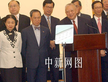組圖:香港特首董建華與“新內(nèi)閣”拍攝全家福 2002年06月24日 12:36 ![]() 董建華與“新內(nèi)閣”拍攝全家福。香港特首董建華6月24日在香港禮賓府宣布二十一名“新內(nèi)閣”成員名單后,與將肩負(fù)重任的高官拍攝全家福。中新社傳真任晨鳴攝 ![]() 董建華宣布“新內(nèi)閣”名單。香港特首董建華6月24日在香港禮賓府宣布二十一名“新內(nèi)閣”成員名單。中新社傳真洪少葵攝 ![]() 曾蔭權(quán)梁錦松梁愛(ài)詩(shī)繼續(xù)輔佐董建華。香港特首董建華6月24日在香港禮賓府宣布二十一名“新內(nèi)閣”成員名單,原來(lái)的三位司長(zhǎng):政務(wù)司司長(zhǎng)曾蔭權(quán)、財(cái)政司司長(zhǎng)梁錦松、律政司司長(zhǎng)梁愛(ài)詩(shī)留任。中新社傳真洪少葵攝