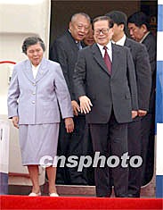 五年四次蒞臨香江 江澤民抵港參加回歸慶;顒(dòng) 2002年06月30日 16:24 ![]() 中國(guó)國(guó)家主席江澤民和夫人王冶坪,6月30日下午乘專機(jī)抵達(dá)香港,出席香港回歸祖國(guó)五周年大會(huì)暨香港特區(qū)第二屆政府就職典禮活動(dòng),香港特區(qū)行政長(zhǎng)官董建華登機(jī)迎接。中新社傳真 任晨鳴 攝