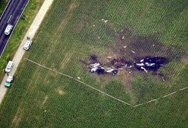 圖文:俯瞰飛機殘骸 大片地面被燒焦 2002年07月02日 19:54 德國當?shù)貢r間7月1日夜(北京時間2日晨),一架DHL公司的波音757貨機和俄羅斯巴什基爾航空公司的圖-154客機在德國巴登-符騰堡州于伯林根鎮(zhèn)上空相撞并墜毀,至少已造成71人死亡,其中包括52名兒童。圖為散落在地上的飛機殘骸,可見大片地面被燒焦。(春風)