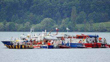 圖文:搜救船只在博登湖上搜尋 2002年07月02日 20:02 德國當?shù)貢r間7月1日夜(北京時間2日晨),一架DHL公司的波音757貨機和俄羅斯巴什基爾航空公司的圖-154客機在德國巴登-符騰堡州于伯林根鎮(zhèn)上空相撞并墜毀,至少已造成71人死亡,其中包括52名兒童。圖為搜救船只在博登湖上搜尋。(春風)