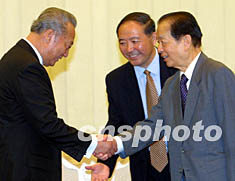 圖:錢其琛會見臺灣知名企業(yè)家大陸考察團 2002年07月05日 20:15 ![]() 中國國務(wù)院副總理錢其琛五日在北京會見由辜濂松(左一)等組成的“臺灣知名企業(yè)家大陸考察團”一行。作者:鄭萍萍