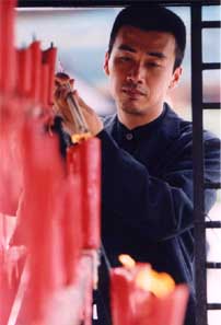 拍攝花絮:柳云龍靈山大佛前祈禱(多圖) 2002年07月11日 15:50 ![]() 現(xiàn)場圖片 ![]() 無錫有座靈山,靈山大佛為天下第一高立佛,高達88米。相傳佛陀涅槃后千年,玄奘大弟子窺基帶著佛祖遺物——菩提心燈至靈山傳法,遂神燈成為靈山鎮(zhèn)山之寶。因此緣,再四百年,佛祖百丈金身終現(xiàn)靈山山巔。我們的景就選在這個空靈而神奇的地方。 全組清早五時從駐地出發(fā),沐著淡淡的薄霧前行,偶爾有幾簇青蔥的仙人樹映入眼簾,樹上花紅似火。事先沒有任何預(yù)兆,天下突然起了大雨,我們是在雨中進入祥符寺的,鐘六一的重頭戲?qū)⒃谶@里完成。由于雨太猛烈,劇組無法工作,所有的人在殿前靜靜地候著。香燭忽明忽暗,山門口的佛背身而立,呢喃的頌經(jīng)聲遠遠傳來,青煙裊裊濾去塵世的躁動,勾勒歲月的嬗變。雨稍小了一點,劇組開始拍攝,柳云龍飾演的黑社會老大鐘六一是個身世復(fù)雜經(jīng)歷奇異終日徘徊在矛盾與痛苦中的人物,當(dāng)他曾經(jīng)輝煌、磨難、罪惡直至眾叛親離的一生走到盡頭的時候,鐘六一孤獨地找尋寺廟,似乎這里有種力量在召喚著他。柳云龍換上一身墨色的行頭,支著黑傘,出現(xiàn)在鏡頭前,蒼白的臉頰裸露青茬,和著雨珠同冰冷。他徑直走入佛殿,跪拜佛前,將臉深埋蒲團,久久未起。因為雨的淅瀝,因為柳云龍的專注,大家一時竟分不出是戲里還是戲外。一名僧者掠過鐘六一,在他身邊低語了一番,鐘六一呆滯的雙眼突然跳動了一下,福田寬廣,也許這個或無情或深情的焦灼靈魂在此刻頓悟——往事隳飛煙滅,一切皆成夢魘。 大家渾身濕透,有雨水更有汗水。如果說影視是切換的張力的藝術(shù),那么,跟隨角色的足跡,演員循著創(chuàng)作進程可以發(fā)掘存在的原本,表達的支點。進入拍攝后期的柳云龍極大地沉浸在人物的狀態(tài)里,桀驁不馴,獨來獨往,演員的幸福與痛苦于第一自我和第二自我的交替中穿插著,這是創(chuàng)造賦予創(chuàng)造者的生命。 柳云龍在鐘六一的起落中脫胎換骨,完成著作為演員的使命。