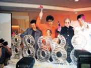 蘇永康帶笑謝歌迷:我回來了(附圖) 2002年08月14日 10:26 ![]() 歌迷的打氣信給康仔很大的鼓勵(lì) ![]() 蘇永康主持破冰儀式寓意新開始 中新網(wǎng)香港8月14日消息:包含“重新出發(fā)”與“新專輯慶功”雙重意義的蘇永康“SUPER NICE”記者會13日下午在遠(yuǎn)東飯店舉行。 據(jù)明報(bào)報(bào)道,康仔在記者會上神情顯得輕松自在。蘇永康說,這段接受勒戒的日子里,他深深感受到家人、朋友、歌迷帶給他的愛與關(guān)懷,這是他三十多年首次如此深切的體驗(yàn)。 唱片公司特別為康仔安排“消災(zāi)解厄儀式”,希望他遠(yuǎn)離災(zāi)難、重新出發(fā)。該儀式先是過火盆,再來是噴柚子葉水,最后吃豬腳面線,另外蘇永康也擊破一座“88888”的冰雕,象征著他的唱片專輯賣得非常成功,突破8萬8千888張。整個(gè)活動(dòng)尷尬的氣氛被“慶功”的意味給沖消掉了。(林佳宏)