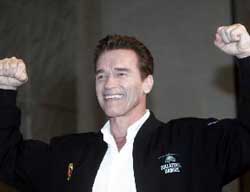 中新網北京8月20日消息:如果有一天,你發(fā)現(xiàn)好萊塢動作片巨星施瓦辛格堂而皇之地坐在州長的位置上,你可不要以為他是在演戲。已經在世界影壇風光了近二十年的施瓦辛格大概意識到了“花無百日紅”的道理,因此蓄意棄影從政。前不久,他終于邁出了從政第一步,扮演一位州長候選人的角色。
