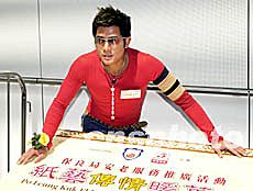 “保良局永恒愛心之星”郭富城8月22日在香港出席保良局“紙藝傳情暖萬心”活動。郭富城一身紅衣十分搶鏡。鄧慶樂 攝