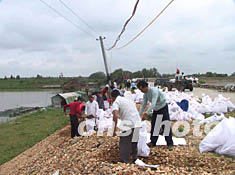 二十六日清晨的暴雨使洞庭湖區(qū)的防汛壓力再次加大,守堤軍民再次加高大堤子堤。作者:白祖偕
