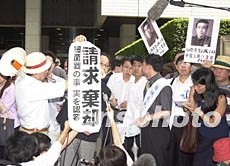 日本東京地方法院二十七日對侵華日軍細(xì)菌戰(zhàn)中國受害者索賠案進(jìn)行判決,首次認(rèn)定日軍七三一部隊(duì)在中國進(jìn)行細(xì)菌戰(zhàn)的犯罪事實(shí),但卻駁回中國受害者向日本政府索賠的訴求。圖為法院工作人員向等候在法院外的媒體宣布判決結(jié)果。作者:陶光雄