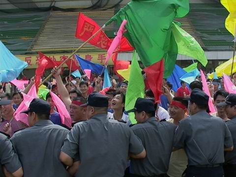 今天上午,福建省體育中心場(chǎng)內(nèi)出現(xiàn)了數(shù)百名“球迷”,在一片“打倒黑哨”的口號(hào)聲,“綠茵場(chǎng)”內(nèi)亂成一團(tuán),摔礦泉水瓶,砸酒瓶,甚至趁機(jī)放火,一時(shí)“狼煙四起”。隨著“事態(tài)”的發(fā)展,福建省公安機(jī)關(guān)和武警部隊(duì)的各主要警種陸續(xù)聞?dòng)嵹s來。